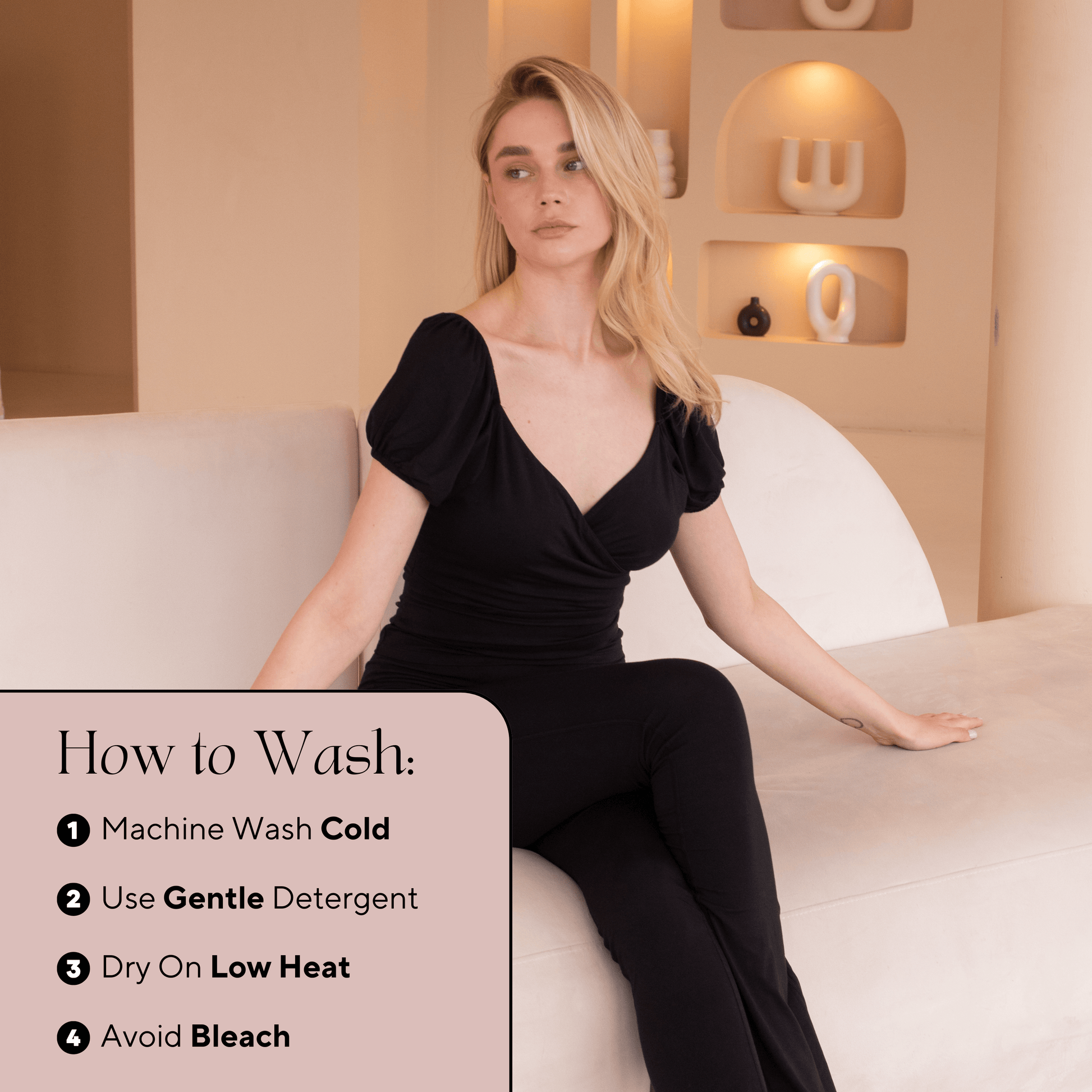 Caring for your loungewear is easy! Most of our pieces are machine washable, and we provide care instructions to ensure your loungewear maintains its luxurious feel and appearance.